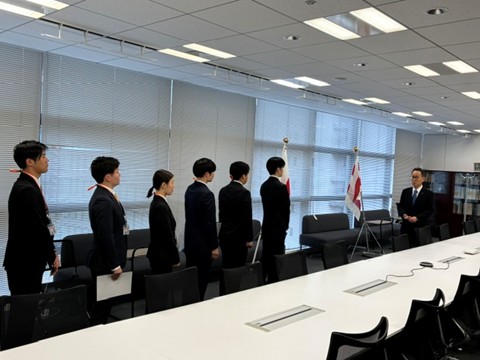 2026年度入社式が、4月1日に本社に於いて行われ、近海郵船㈱6名、近郵船舶管理㈱1名、近海郵船北海道㈱1名の入社がありました。
